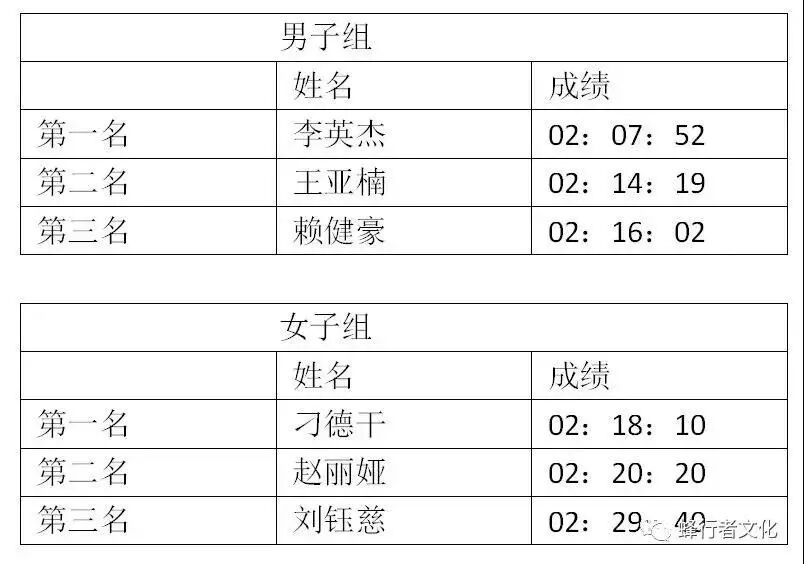随后,王亚楠与赖健豪以不到两分钟的差距分别夺得男子组的亚军和季军。