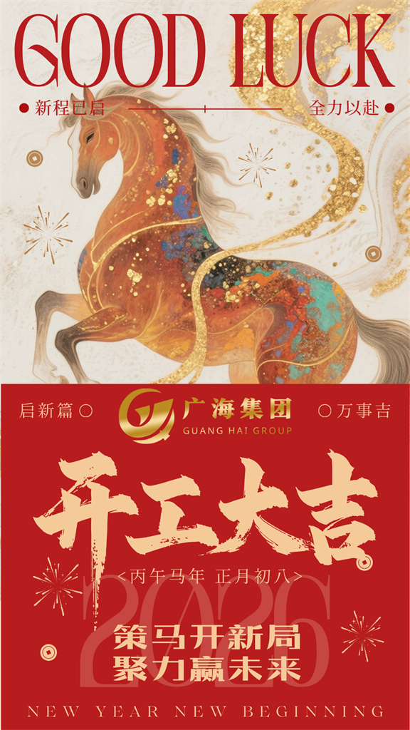 开工大吉 发布时间:26-02-24 丙午新岁,正月初八,吉时已至,开工大吉。今日起,广海集团全体同仁已全员就位,新一年的蓝图已铺开,我们将以千里马的韧劲,跑好全年度的第一程。感谢新老客户的信任与托付,2026,愿与您并驾齐驱,共赴坦途。 [ 返回列表 ] 上一篇:元宵佳节,月圆人圆 ——广海集团 祝您阖家安康,万事顺遂 下一篇:策马扬鞭,共启新岁!恭祝大家新春快乐